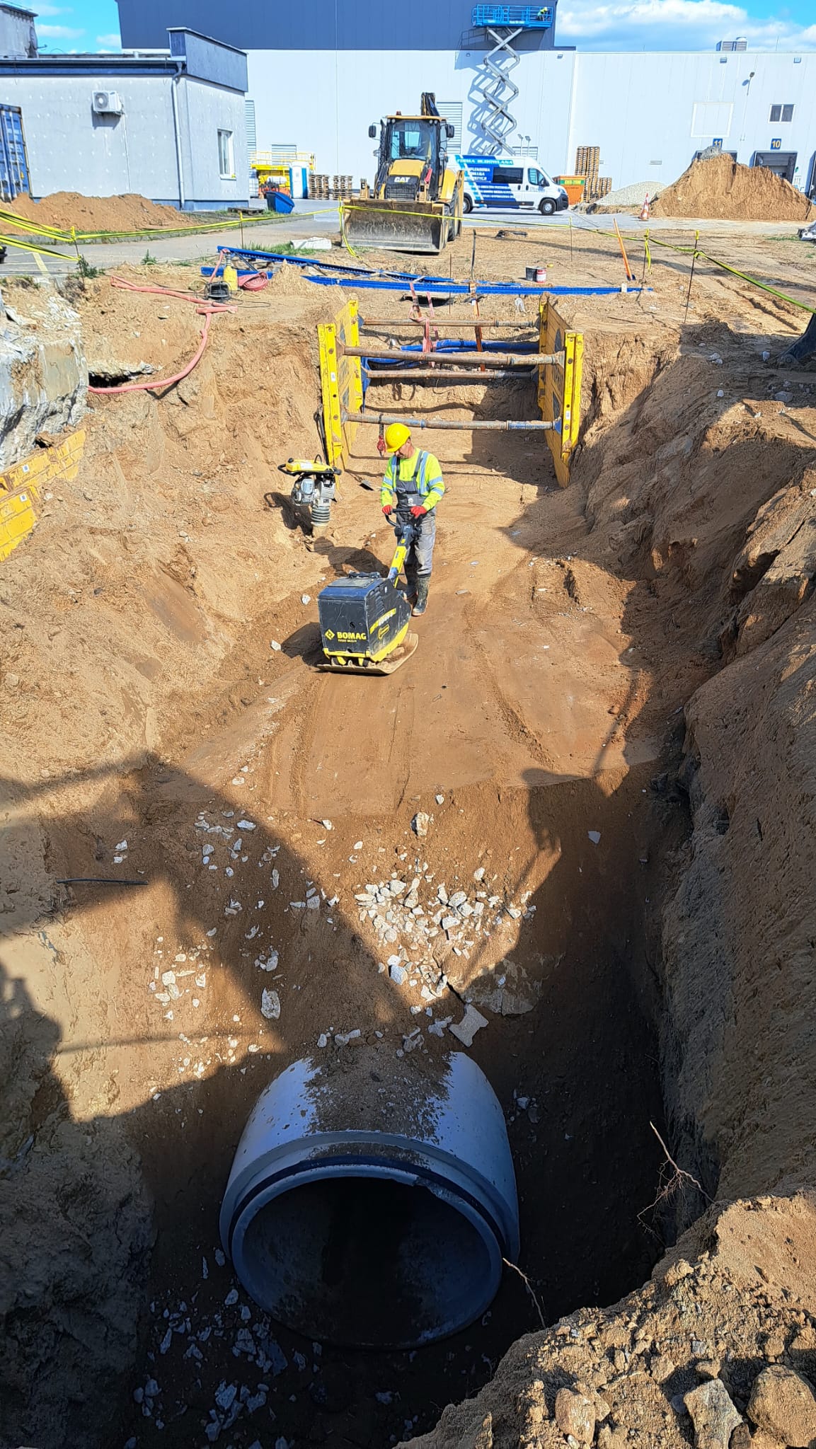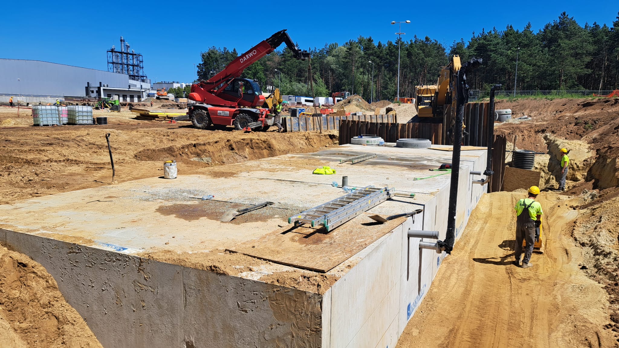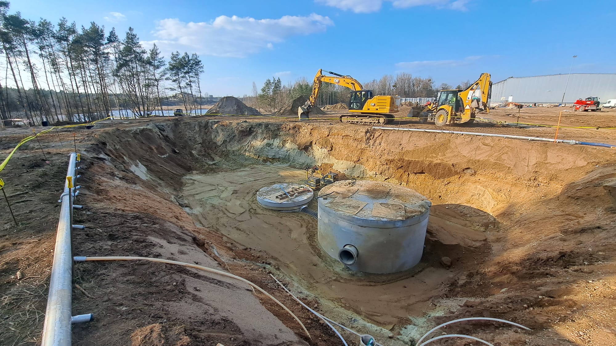 W ramach rozbudowy magazynu wyrobów gotowych firma CEDC International Sp. z o.o. powierzyła nam wykonanie sieci zewnętrznych. W zakres robót wchodziło wykonanie podziemnych żelbetowych zbiorników na wody opadowe oraz na cele gaśnicze.
