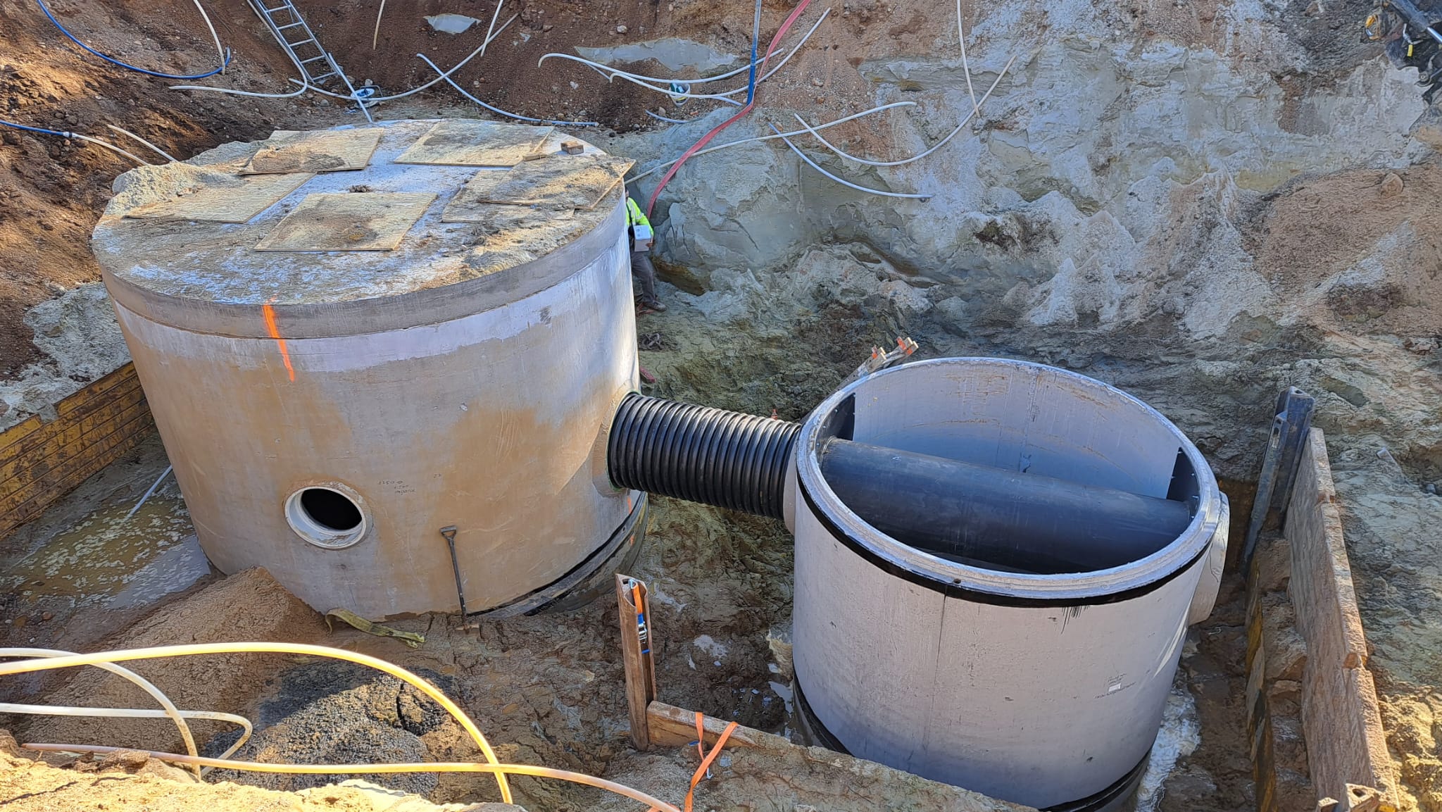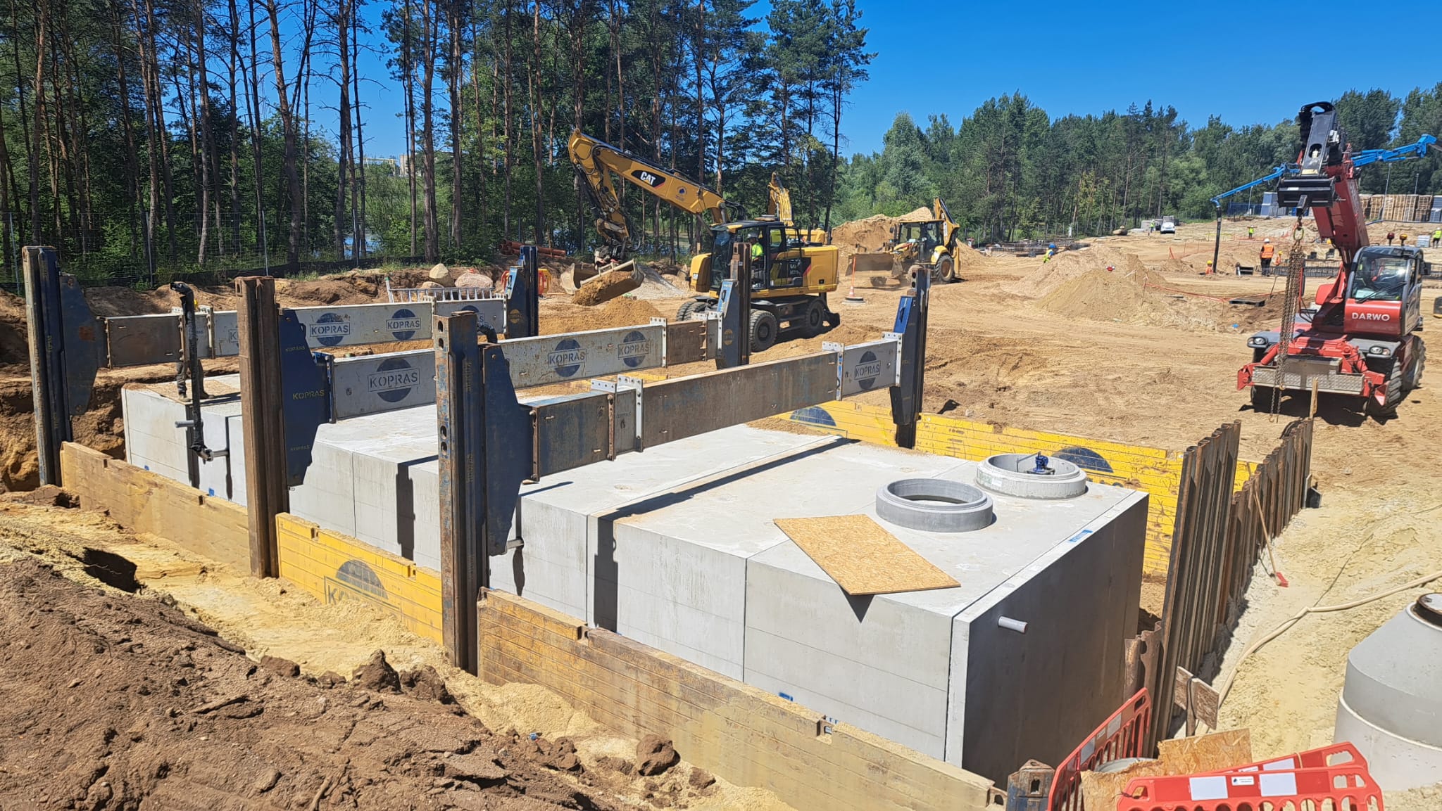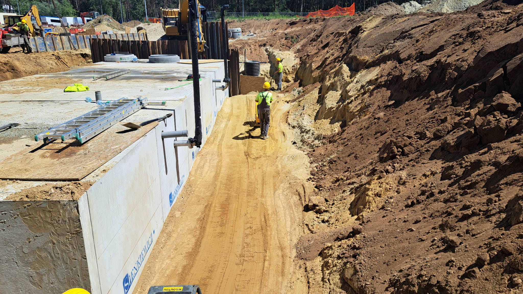 W ramach rozbudowy magazynu wyrobów gotowych firma CEDC International Sp. z o.o. powierzyła nam wykonanie sieci zewnętrznych. W zakres robót wchodziło wykonanie podziemnych żelbetowych zbiorników na wody opadowe oraz na cele gaśnicze.